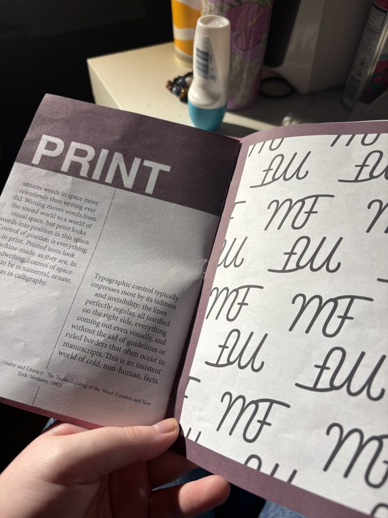 Like last time, I did a test print before I submitted the task- This one I wanted to put together as the booklet would, so I could see it in its final form.